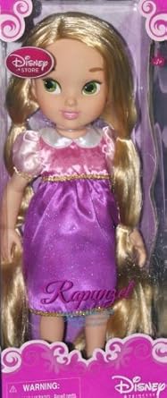- Set includes: Rapunzel doll with flowing rooted hair Floral hairpiece Lavender satin dress with puff sleeves and bodice plus satin ribbon pulls and lace trim Pink and lilac satin dress with puff sleeves, shimmering peplum overskirt and golden trims Pair of molded shoes Tiara Frying pan Hairbrush ''Floating lantern'' with elastic loop Guitar Plush Maximus Plush Pascal